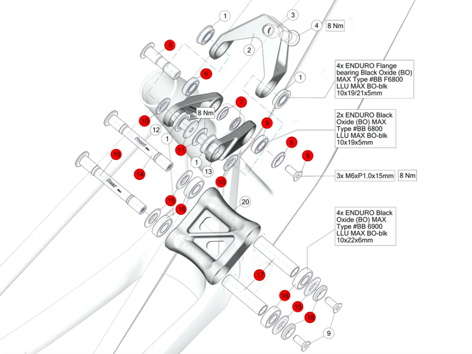 Kit de visseries de suspension arrière avec roulements pour Fourstroke 01 / Fourstroke à partir de l’annĂ©e modèle 2023.