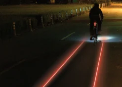 Sa puissance d’éclairage est de 250 Lumens maximum. Il dispose de plusieurs modes de luminosité pour permettre d’être vu dans diverses conditions de circulation. Il se distingue plus particulièrement par son mode de diffusion laser au sol (projecteur laser sans risque d’éblouissement pour les conducteurs à l’arrière).